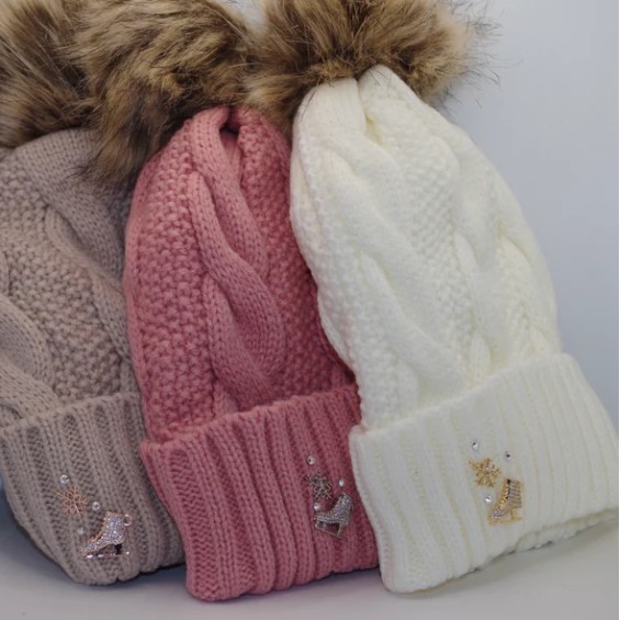 L'adorabile cappello da pattinaggio è realizzato in una miscela acrilica ed è foderato con il pile più comodo. La composizione lo rende facile da lavare e mantenere. Disponibile in crema, nero, grigio, rosa e beige.