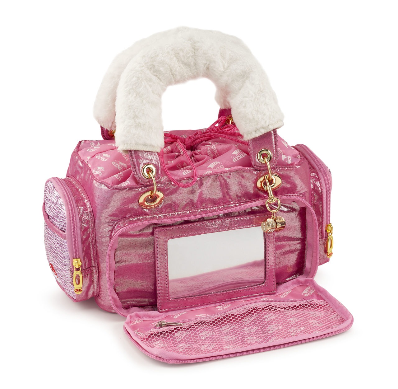 La tasca frontale a mezzaluna si apre completamente, scoprendo una tasca interna in rete con cerniera per tenere in ordine tutti gli accessori per il trucco e uno specchio removibile per realizzare il make up perfetto!La borsetta perfetta da poter sfoggiare per portare tutto l’occorrente e mantenendo uno stile unico.
